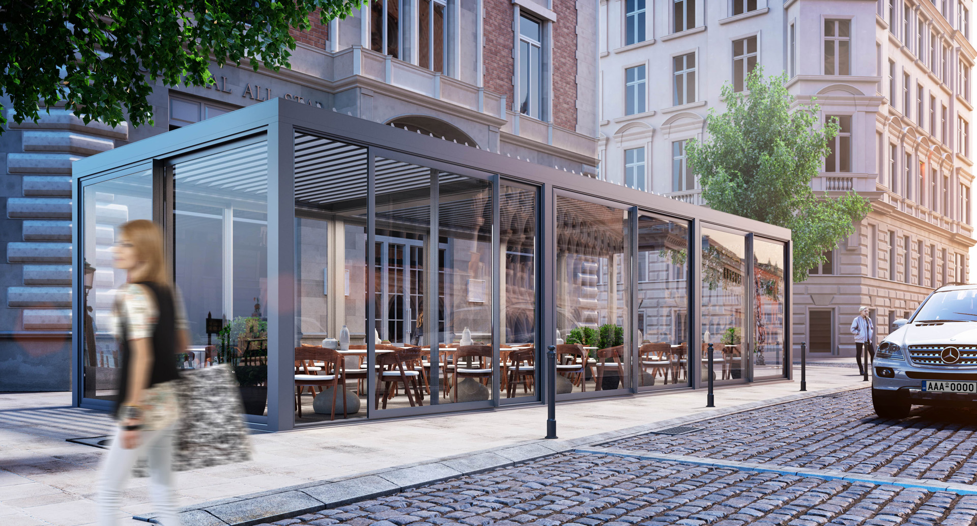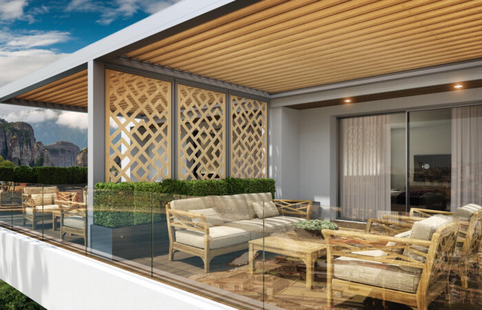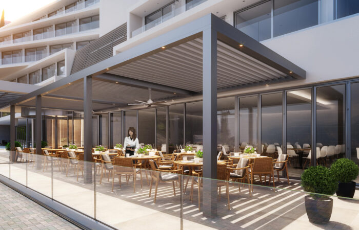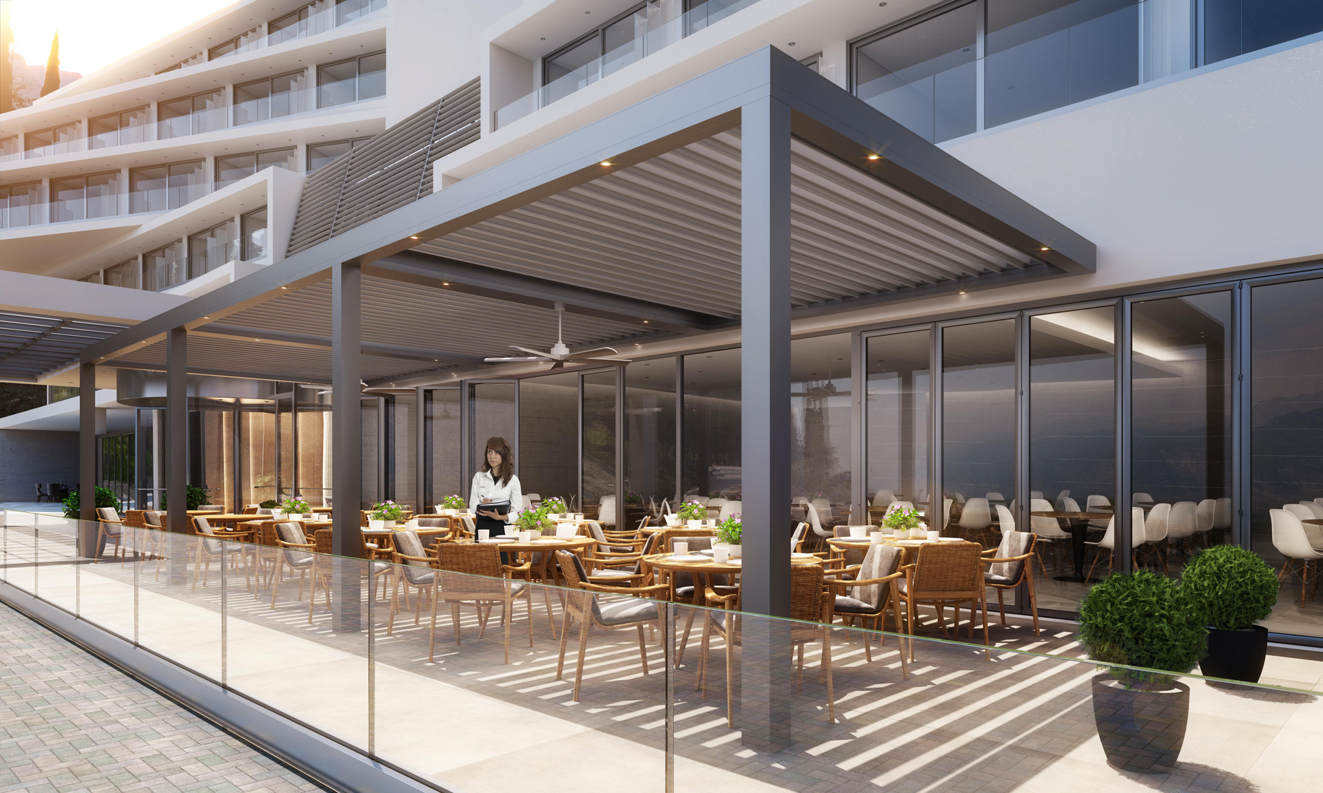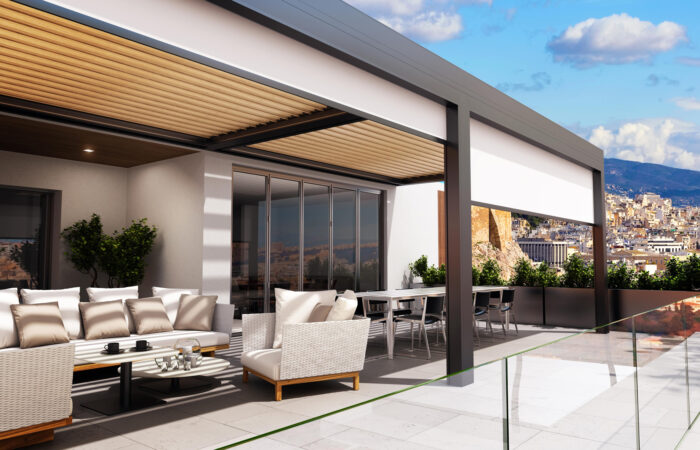 Ο βιοκλιματικός σχεδιασμός παράλληλα προστατεύει από το νερό της βροχής και το χιόνι, επιτρέποντας την εκμετάλλευση του εξωτερικού χώρου καθ’ όλη την διάρκεια του χρόνου.