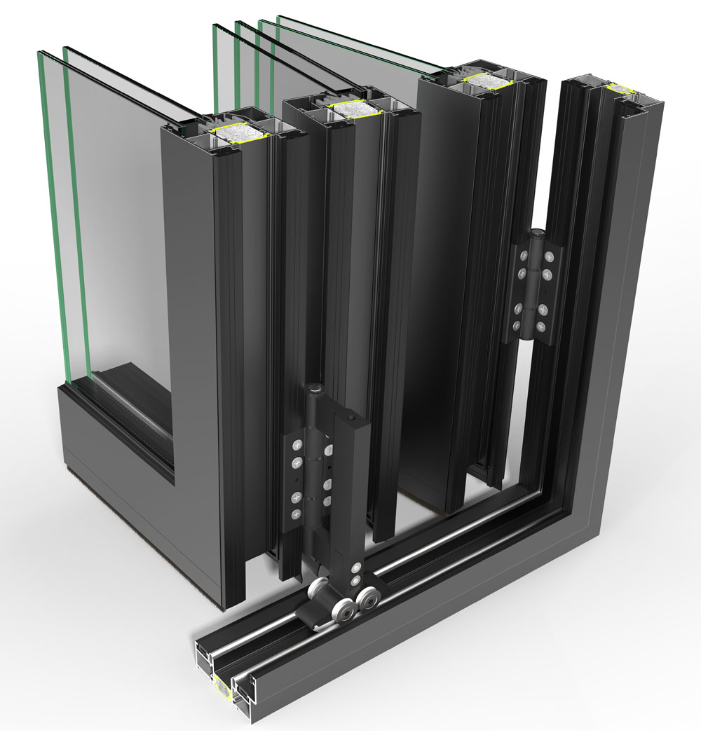 Η κύλιση του φύλλου στον κάτω οδηγό προσδίδει απόλυτα ομαλή λειτουργικότητα, παρά την στοιβαρότητα των προφίλ. Παράλληλα μέσω ειδικά σχεδιασμένων κατωκασίων παρέχεται ευκολότερη πρόσβαση για ΑμεΑ.. Τέλος με το προφίλ γωνιακής κολώνας τοποθετημένο επάνω στο φύλλο επιτυγχάνεται ανεμπόδιστη θέα κατά το άνοιγμα των φύλλων της κατασκευής.